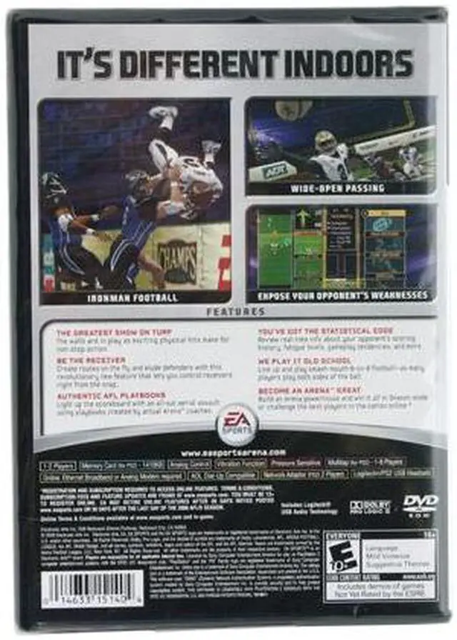 | Features | True to AFL rules, Arena Football will feature 8-on-8 play, including six players who play both sides of the ball, and the ability to send players into and over the walls with each exciting play. Fast-paced and high-scoring offenses allow players to launch an all-out aerial assault using playbooks created by real-life AFL coaches. |