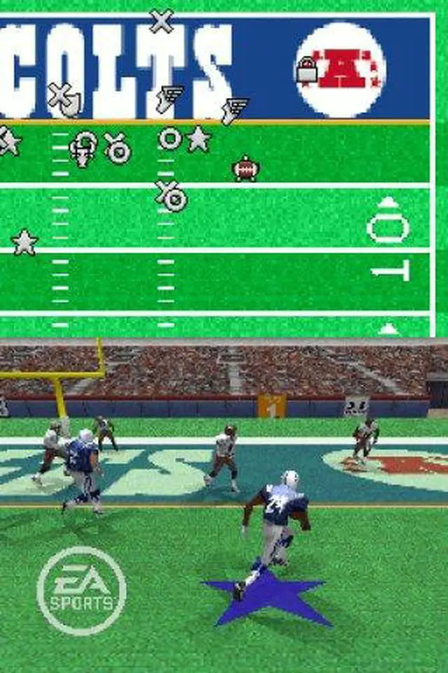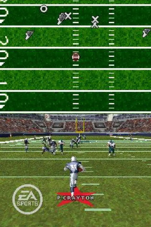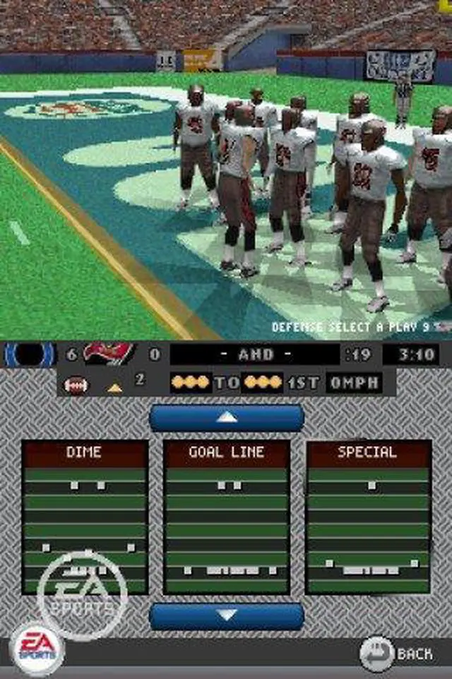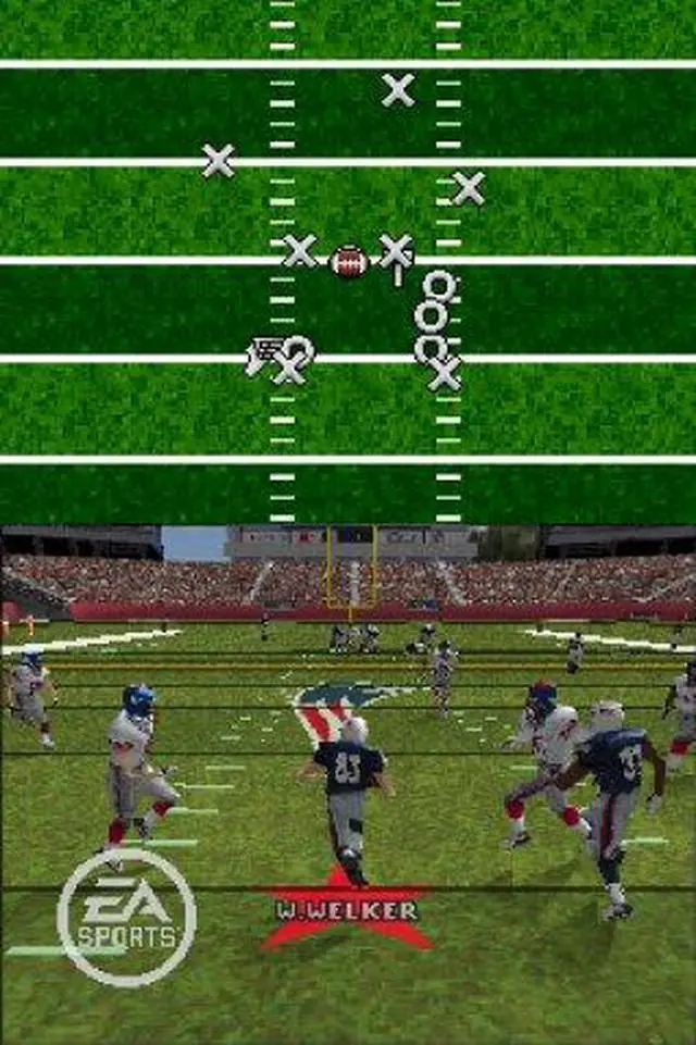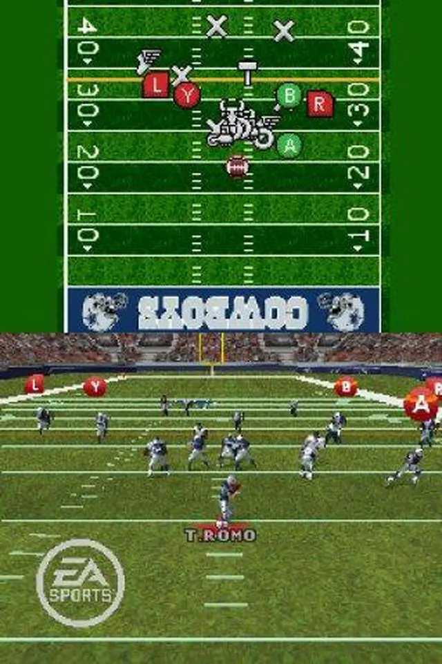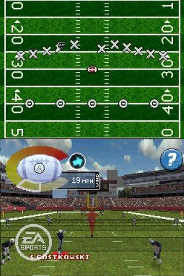Play the action on the bottom screen while seeing the field position on the upper. Go deep with the full-featured Franchise mode and control every aspect of team ownership. The popular paper football goal-kicking game returns and has been joined by several other mini-games in the Rec Room, including a chalk-board memory game and a pair of retro card games. Take on an opponent or invite others to play on your team with multi-card and single-card modes that support up to 8 players.
