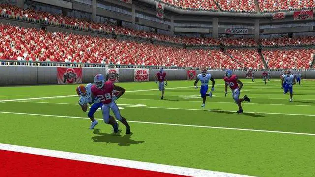 NCAA Football 2009 captures the dynamic energy that is college football – both on and off the field. The improved branching animation feature not only frees your player from having to complete one action before beginning another, but lets you link together jukes, spins and stiff-arms into fluid action with a wave of your Wii Remote as you weave your way through the defense towards the end zone. Running backs aren't the only beneficiaries as your quarterback can pump fake and receivers can make one-handed catches while defensive linemen can hit high or low and gang up on tackles.