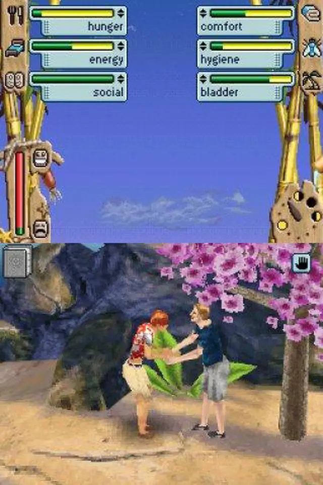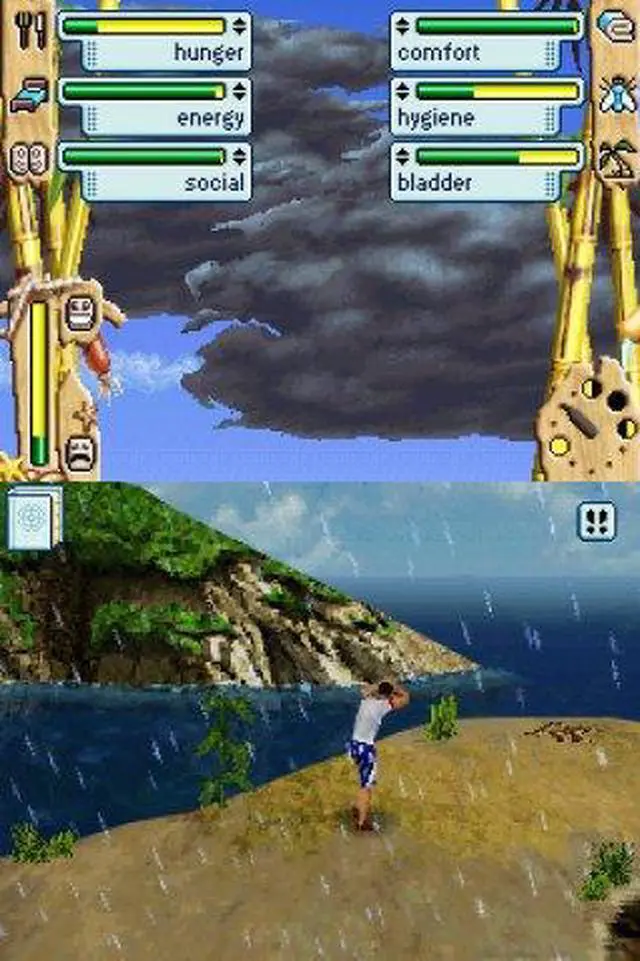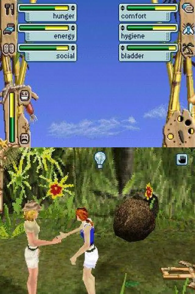 The popular Sims go native! Create up to six Sims to crew a boat and set them out on a nice relaxing cruise... until, of course a storm hurls them overboard. Your primary character washes ashore on a deserted island and soon figures out that help is not coming soon. Fortunately, a group of books left by previous castaways provides helpful direction in what it takes to survive – ranging from building shelter to making a fire pit.