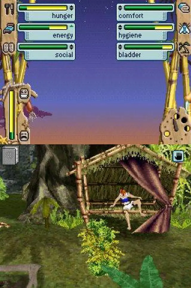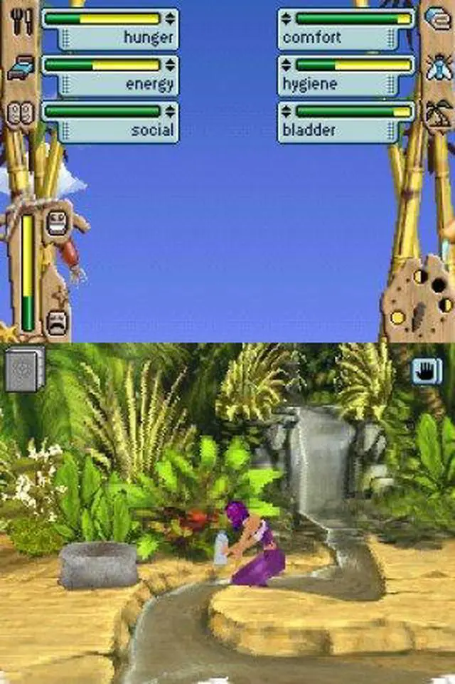 Explore the island in search of food and materials while taking care of your Sim's basic needs. Befriend the native chimps who will help gather resources. Further exploration will lead you to your fellow castaways on other islands. Build connections with your fellow survivors to create a tribe. You'll also discover the means to summon help. The question is, do you return to civilization, or would you rather stay in paradise?