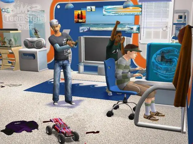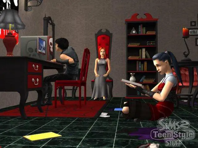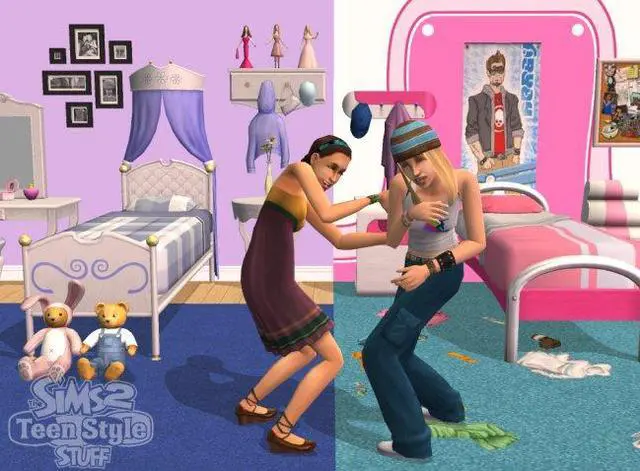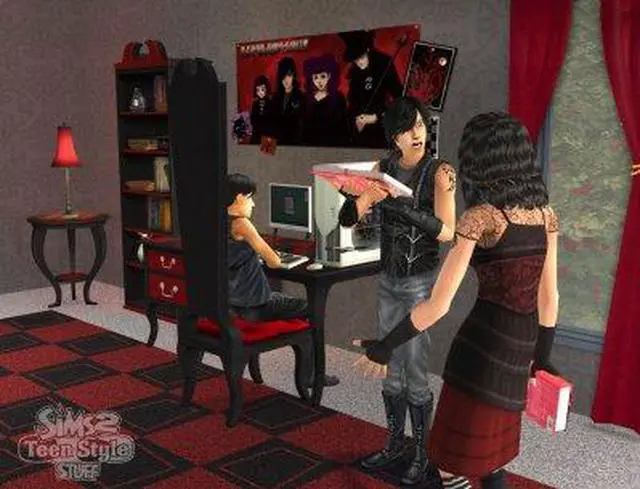 | Features | Must-Have Stuff for Your Teen Sims to Express Their Unique Style! Give your teen Sims everything they need to express their unique style with The Sims 2 Teen Style Stuff! Now your teen Sims can show some attitude with all-new, unique furniture, decor items, fashions and more with three distinct themes--'Goth,' 'Thrasher,' and 'Socialite.' Give your Sims a new phone, stereo, TV, and other gadgets to keep them up to date and in touch with their friends. Make sure your Sims are always sporting the latest teen fashions including track suits, designer jeans, and yoga outfits. Let your young Sims express themselves in ways only teenagers can! |