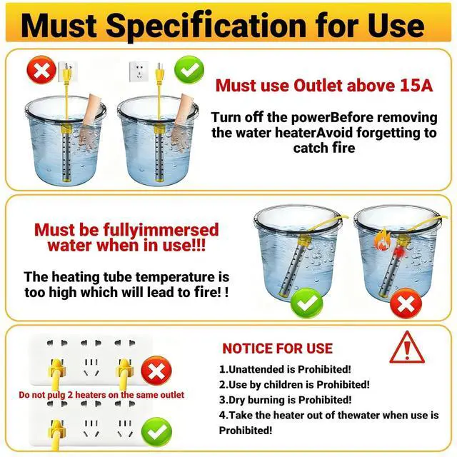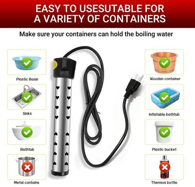 Wide application range: Our portable swimming pool heater is suitable for portable bathtubs, mini pools (for multiple uses), sinks, buckets, washbasins, etc., ensuring that the container can hold hot water when using it. This immersion heater is convenient and ultra-light, making it perfect for both travel and road trips.