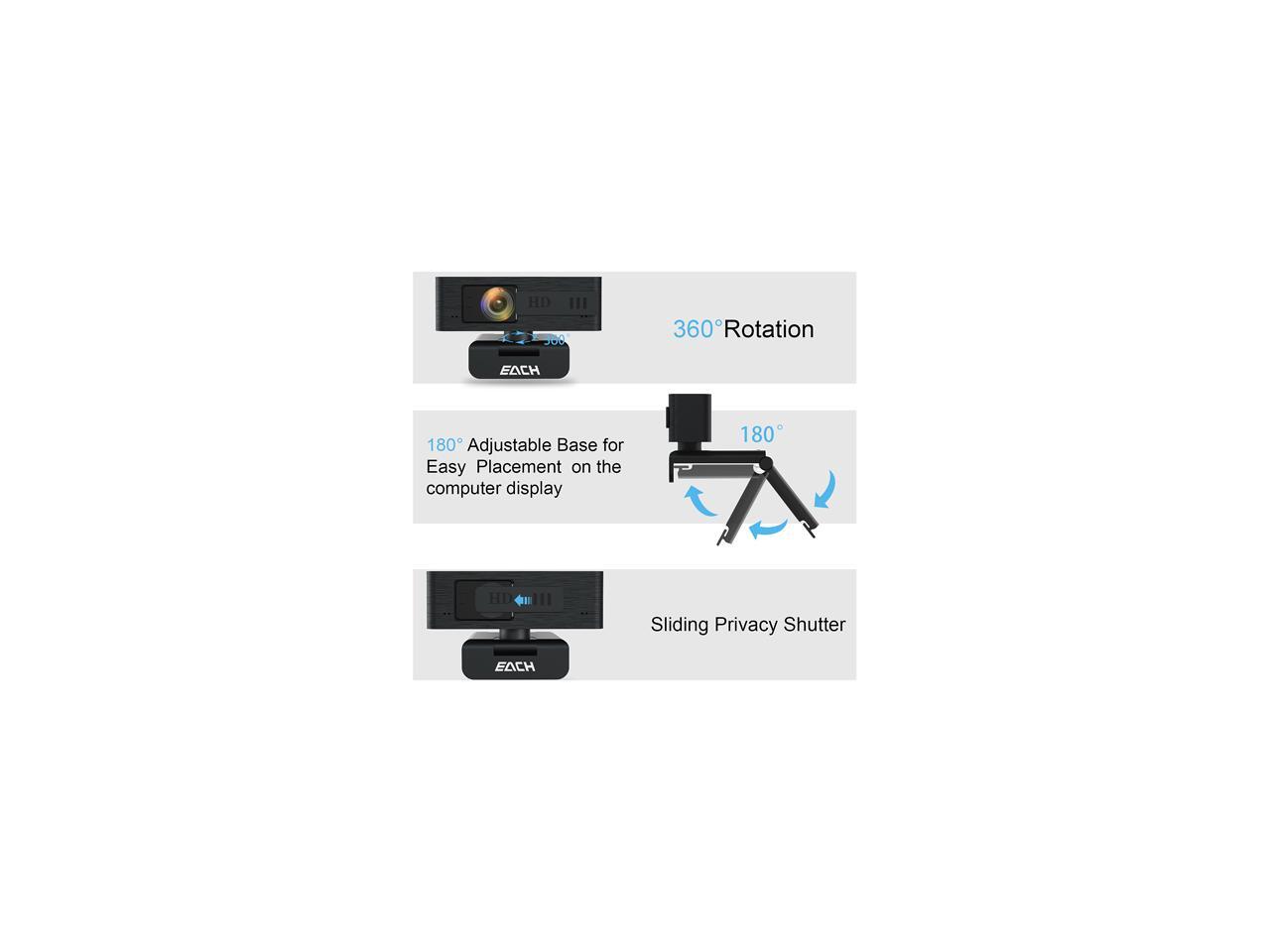 EACH AutoFocus Full HD Webcam with Privacy Shutter 1080P-360 Degree Rotating Webcam-USB Computer Camera for PC Laptop Desktop Mac Video Call