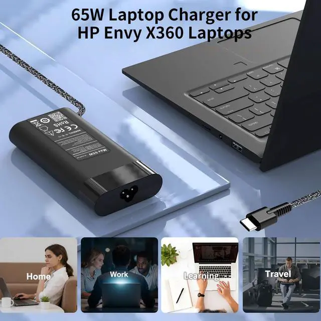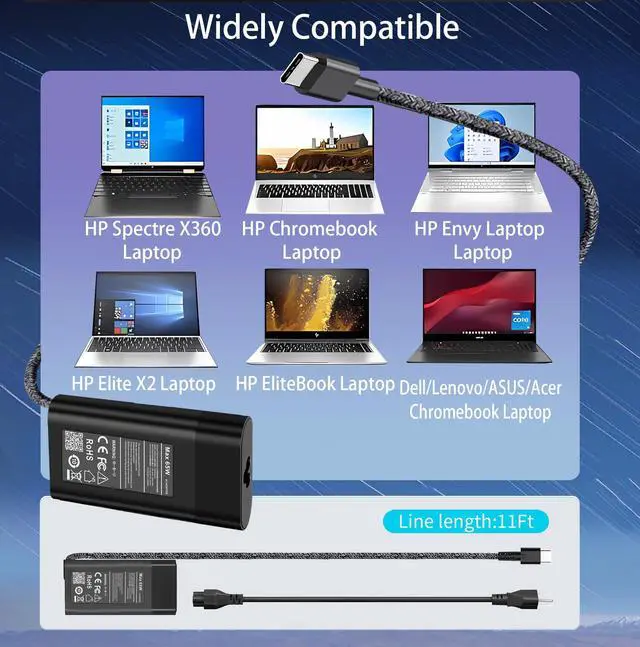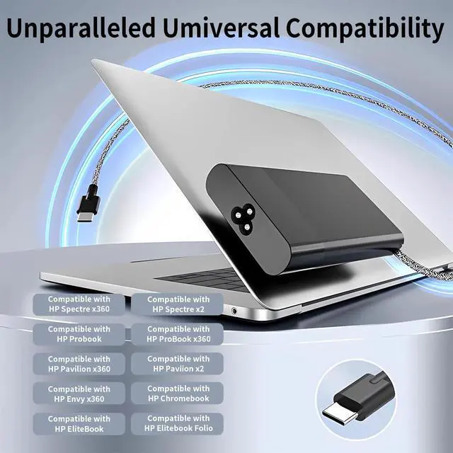 New Slim 65W 45W USB C Laptop Charger,For HP Envy/Spectre/Elitebook/Elite X2/Probook, Envy X360,Spectre X360,EliteBook X360,Chromebook X360 Laptop