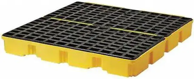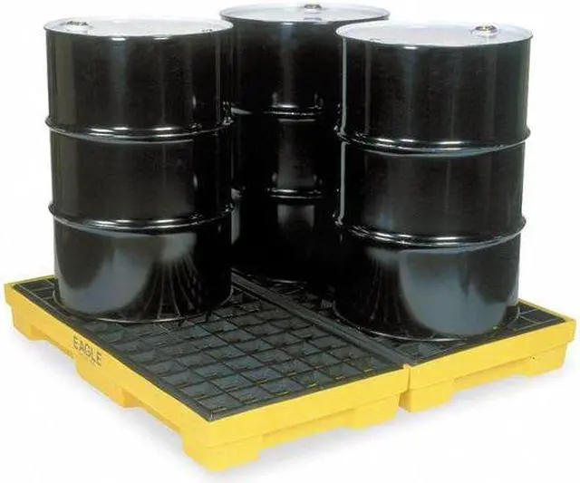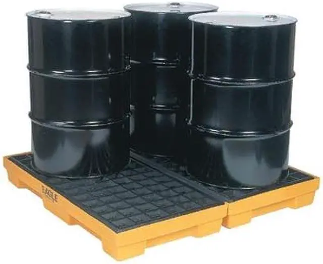 The Eagle 1634 Drum Spill Containment Pallet is the spill containment pallet that you need to keep your workspace clean and safe. This 60 gallon spill containment pallet has a total capacity of 10, 000 lb.. It features four separate compartments, so you can easily segregate different kinds of spills. The black and yellow spill containment pallet has dimensions of 51 1/2 in L x 51 1/2 in W x 6 1/2 in H. It is made from polyethylene for durability and long life. When it comes to keeping your workstation clean, you will definitely want to invest in the Eagle 1634 Drum Spill Containment Pallet.