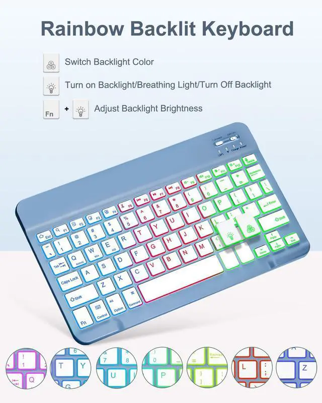 Rainbow Backlit KeyboardRGB rainbow backlit keyboard can provide you with an easy typing experience in darkness,which has 7 adjustable colors.These colors can be switched automatically in breathing light mode, and the brightness of keyboard can be adjusted by pressing Fn+light key.When you don't need backlit,you can turn off it.