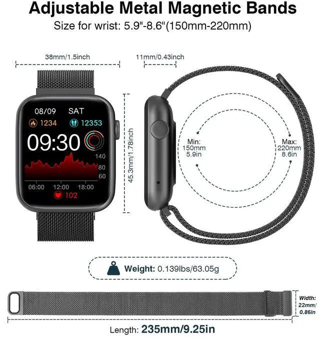 With an IP67 waterproof design, this smart watch can resist water splashes and sweat in daily life, so you don’t have to worry about damaging the watch when washing hands, raining, or doing light water activities.