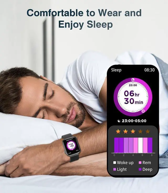 The smart watches has an all-day sleep monitoring function to help you understand your sleep quality and optimize your sleep habits. By accurately recording sleep duration and sleep quality, the watch can provide you with a sleep analysis report to help you better adjust your schedule and improve sleep quality.
