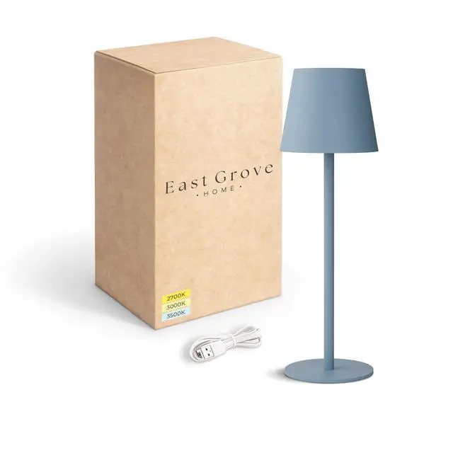 East Grove Home LED Cordless Re-Chargeable Desk Lamp, battery operated with 3 color temperature 2700K-3000K-3500K and fingertip touch on/off switch plus dimming