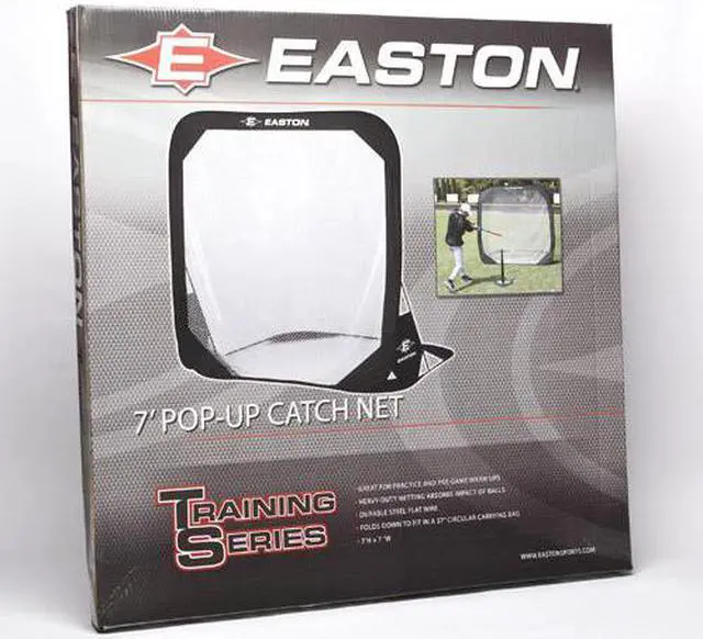 The Easton 1194876 Pop Up Catch Net is great for practice play and pre-game warm ups. It features heavy-duty durable netting that absorbs the impact of the ball, and two breakdown poles with durable steel flat wire for superior strength and resilience. This convenient catch net is simple to set up and take down, and folds down to fit in a 37" circular carrying bag.