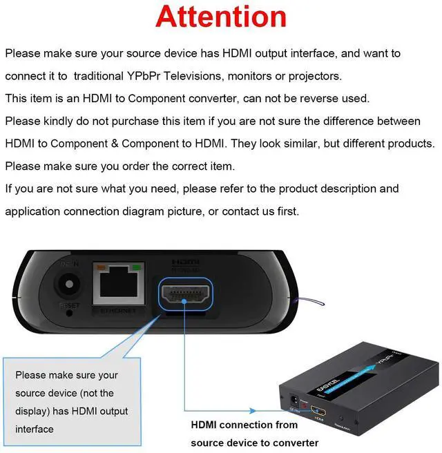 3. This item only supports HDMI to Component, can not be reverse used.