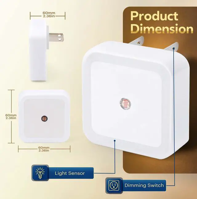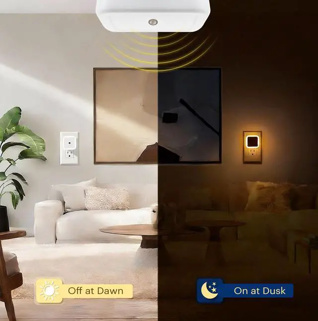 Smart Dusk-to-Dawn SensorBuilt-in sensitive light sensor automatically turns the night light on at dusk and off at dawn, offering effortless, intelligent lighting. The gentle light adjusts its brightness based on the surrounding light intensity, providing just the right amount of illumination without being harsh.