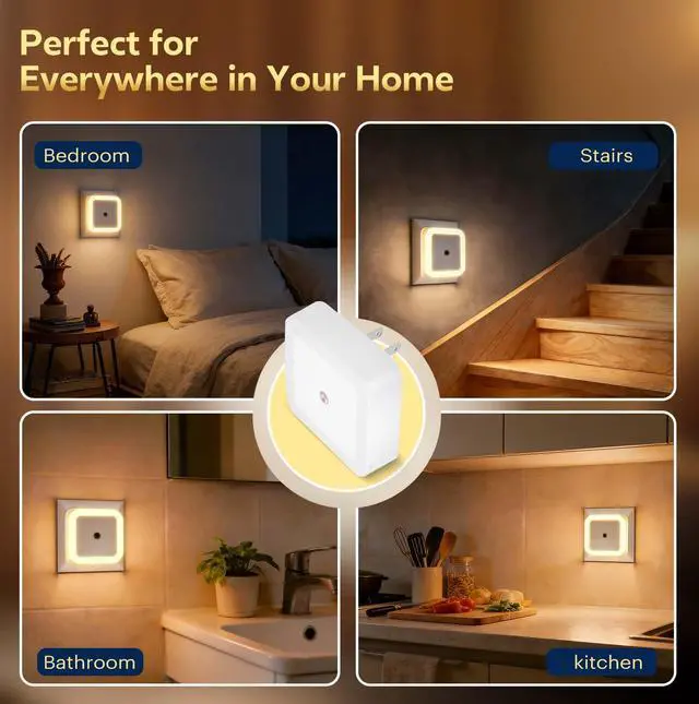 Versatile for Any RoomPerfect for hallways, bathrooms, bedrooms, stairs, kitchens, living rooms, or anywhere extra lighting is needed. These plug-in night lights enhance both safety and ambiance throughout your home.