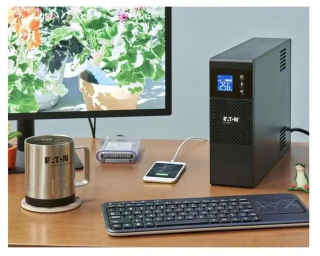 The compact Eaton 5S UPS delivers backup power for desktop PCs and workstations. The Eco-Control capability enables you save up to 30 percent in energy consumption. You can also enhance your power protection and safeguard your data when you pair it with the Eaton UPS Companion software. The 5S displays critical UPS information on battery time and outage tracking through a user-friendly LCD interface.