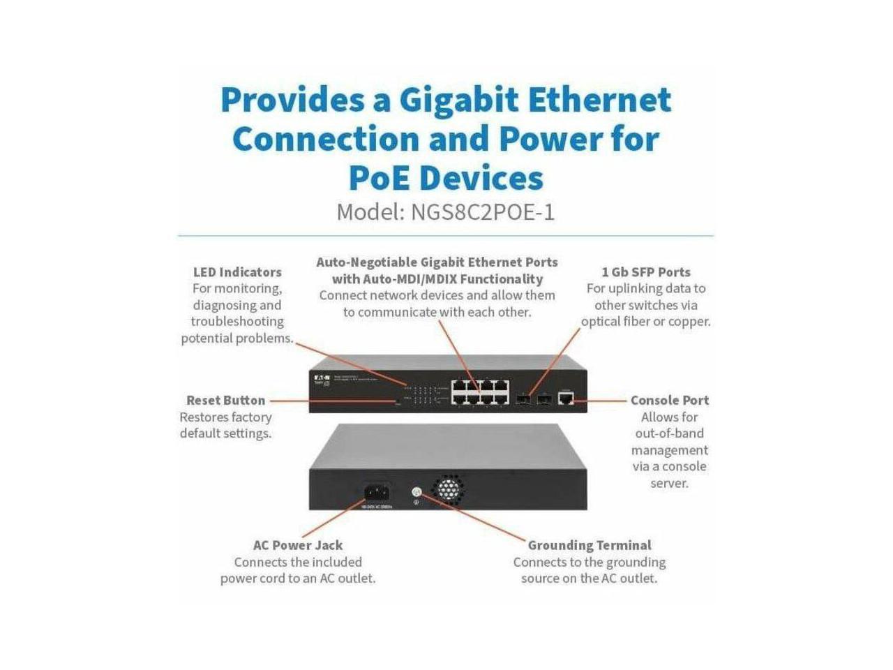 Tripp Lite series NGS8C2POE-1 Ethernet Switch - 8 Ports - Manageable - Gigabit Ethernet - 1000Base-SX, 1000Base-LX, 10/100/1000Base-T - 3 Layer Supported - 2 SFP Slots - 171 W Power Consumption
