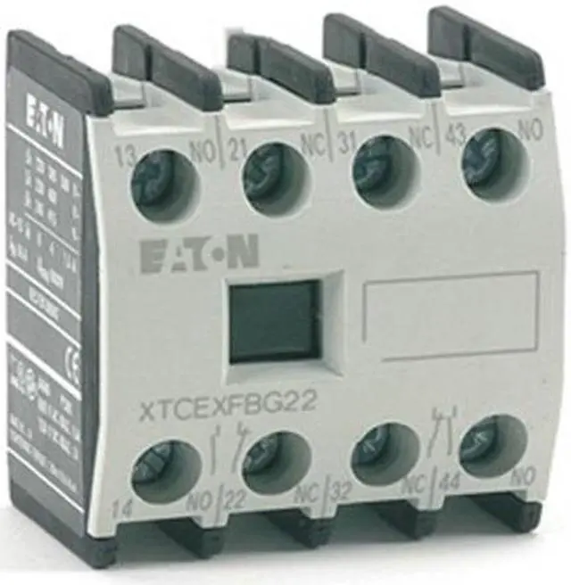 Auxiliary Contact, Current AC 16 A, Number of Poles 4, Number of Contacts 4, Mounting Front, Number of Normally Open Contacts 4, Maximum Voltage Rating 500V AC, Number of Normally Closed Contacts 0, Terminal Connection Type Screw Clamp Terminals, Compatible with Series XTRE Control Relays, Frame Size D, E, F, G. This item has been restricted from sale in the following state (s): []