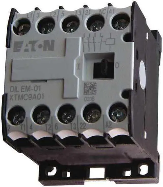 Miniature IEC Magnetic Contactor, Auxiliary Contact Form 1NC, NEMA Enclosure Rating No Enclosure, NEMA Size Not Applicable, Coil Voltage 24V DC, Number of Poles 3, Full Load Current - Inductive 9 A, Full Load Current - Resistive 20 A, Reversing Capability Non-Reversing, Overall Height 2.28 in, Overall Width 1.44 in, Terminal Connection Type Screw Terminals, Frame Size A, Mounting Style DIN Rail, Panel, Series XT, Number of Auxillary Contacts 1, Contactor Style IEC. This item has been restricted from sale in the following state (s): []