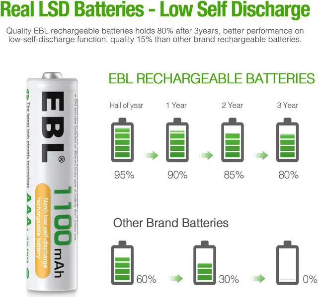 High capacity: No longer to worry about the endurance of the batteries, EBL 1100mAh AAA 1.2V batteries will provide ultra strong power for your devices to performance well and operate longer.