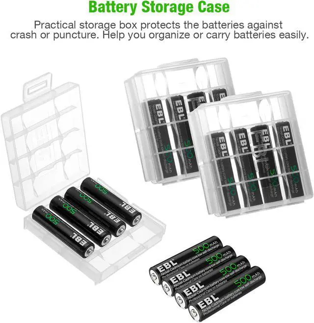 EBL AAA batteries have 500mAh high capacity, it can give you more run time when fully charged.