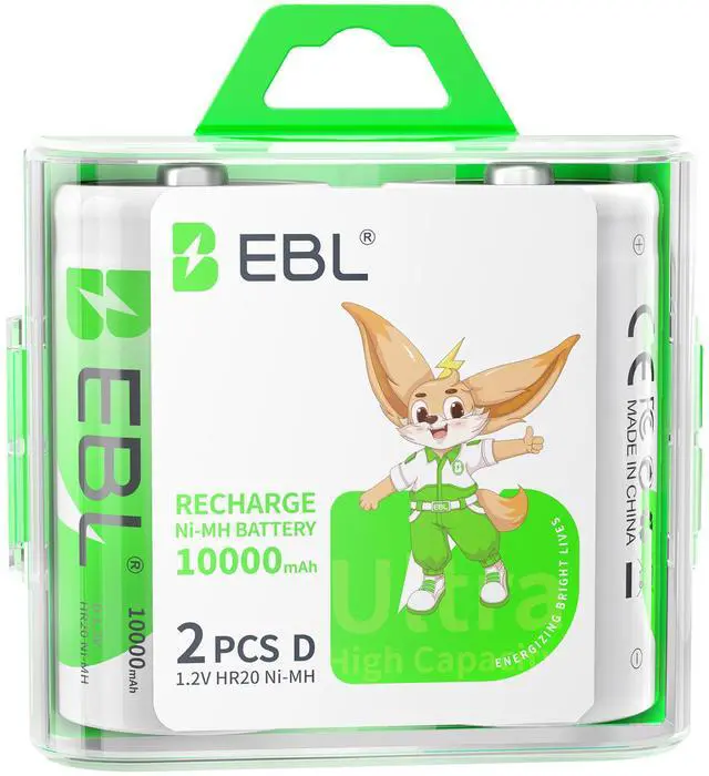 Benefits: High Capacity D Size 10, 000mAh Nickel Metal Hydride (Ni-MH) rechargeable batteries Longer Application Run time with 10, 000mAh rated capacity High Cycle Life -- rated up to 1200 times. Exact replacement for standard D size batteries and NiCd rechargeable batteries Convenient operation due to the advantage that Ni-MH batteries have no memory effect. Compatible with all NiMH D Size battery chargers Can be rapidly charged with smart chargers and universal chargers Battery tested based on International Electronic Commission (IEC) standard to ensure capacity and quality Easily Power Common Devices That Take D