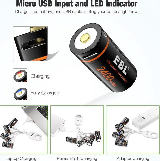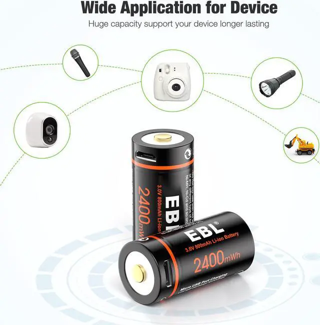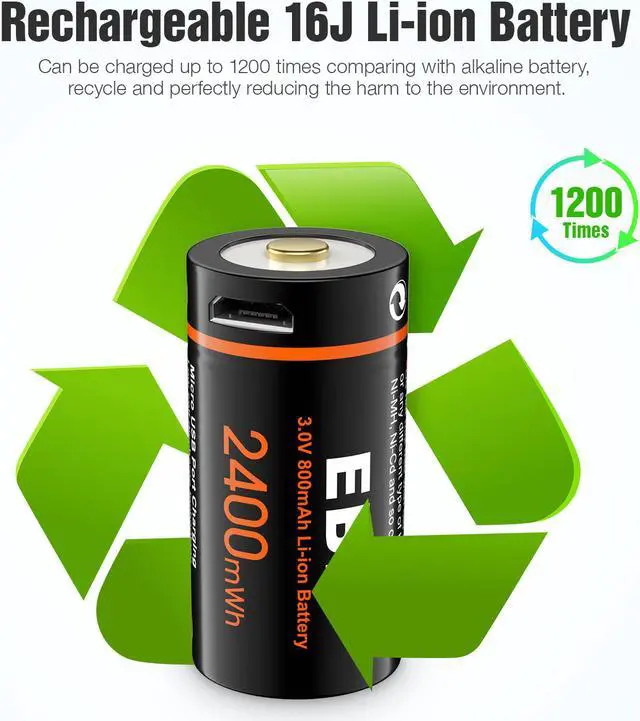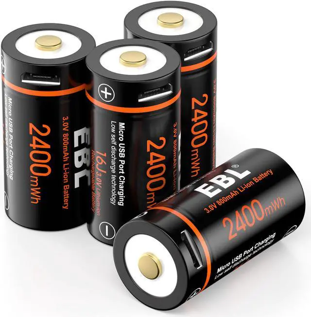 EBL 3V USB Rechargeable Lithium Battery, Steady Voltage for high current applications. These batteries are lighter but have a larger capacity than Ni-MH rechargeable batteries, 800mAh high capacity could support longer working time for your devices.