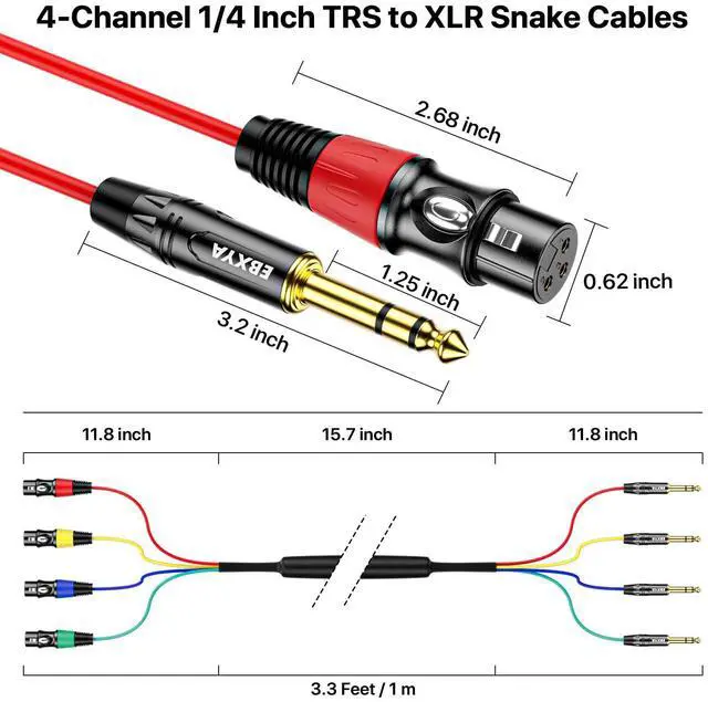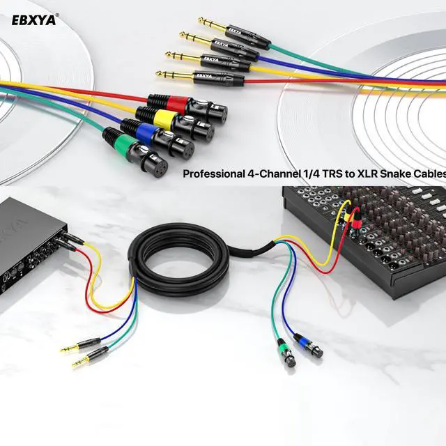- Universal Compatibility: 4-channel XLR to 1/4 inch TRS Snake Connecting multiple audio sources to a mixer or audio interface. Compatible with mixers, audio interfaces, synthesizers, monitors, and surround systems, this cable is plug-and-play ready for music production, live sound, and home theater setups