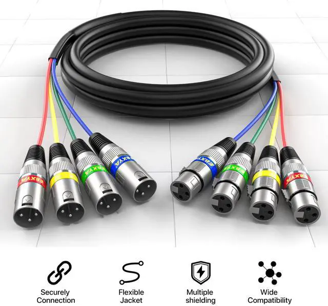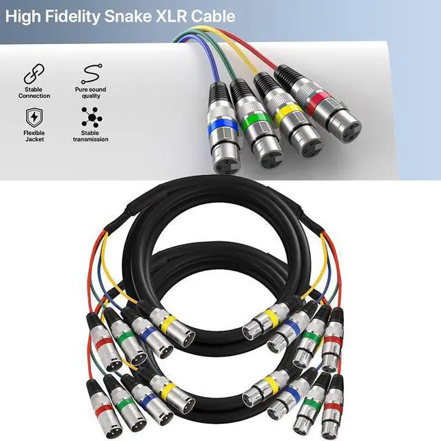 - [Colored 3-Pin Snake Cables] The 4-channel XLR snake is designed in 4 different colors (red, yellow, blue, green) to help you easily trace microphones, mixing boards and other connectors. The speaker cable can be used with any device equipped with a 3-Pin XLR female to male
