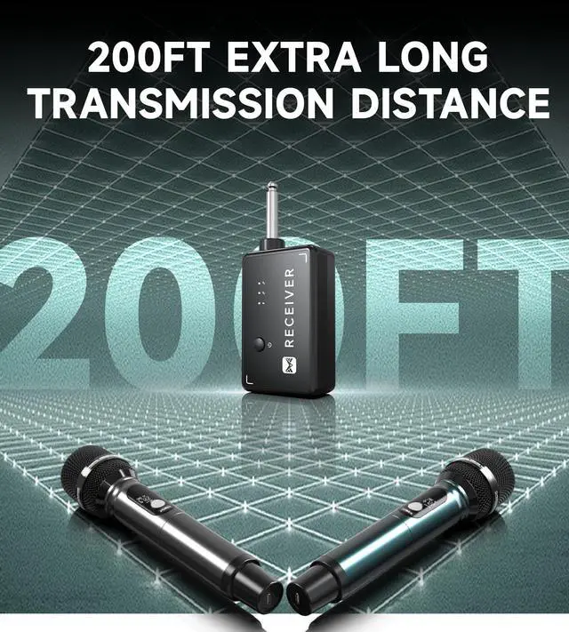 [Next-Gen 2.4G Wireless Microphone for Stable Audio]--Leveraging advanced--2.4G wireless technology, this system boasts powerful intelligent anti-interference capabilities. It acts like a "smart navigator," automatically finding the clearest signal path in crowded wireless environments to eliminate the woes of audio dropouts, lag, and interference. With an impressive range of up to 240 feet, enjoy the freedom to move around on stage, in the classroom, or in large conference rooms, all while experiencing a buttery-smooth wireless audio performance.