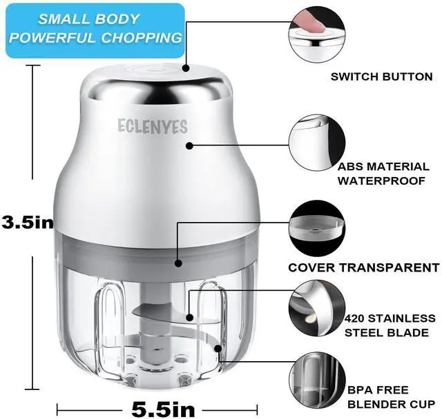 - The garlic chopper is the best mini kitchen processing tools, it is great for chopping ginger, tomatoes, potatoes, onions, garlic, celery, chili, meat without bones or skin, chicken, fish, shrimps, cabbage, carrot, coriander, herb, ice, radish, sweet potato, cauliflower, pepper, nuts, mushroom, cucumber, avocado, watermelon, kiwi fruit and so on.