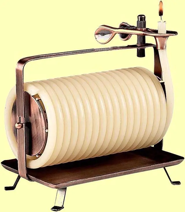 With hours of dreamy candlelight in your Candle by the Hour you can set the amount of time it burns hour by glowing hour. Simply feed the pliable beeswax coil through the candle clip in increments of 3 inches or less. Three inches of Candle will burn for approximately 1 hour. Made of 100 percent beeswax because you breathe what you burn. Unlike paraffin candles that are made from petroleum sludge beeswax candles actually help clean the air. Beeswax produces negative ions when burned which helps remove the pollution and allergens from positive ions allowing them to drop harmlessly to the ground.