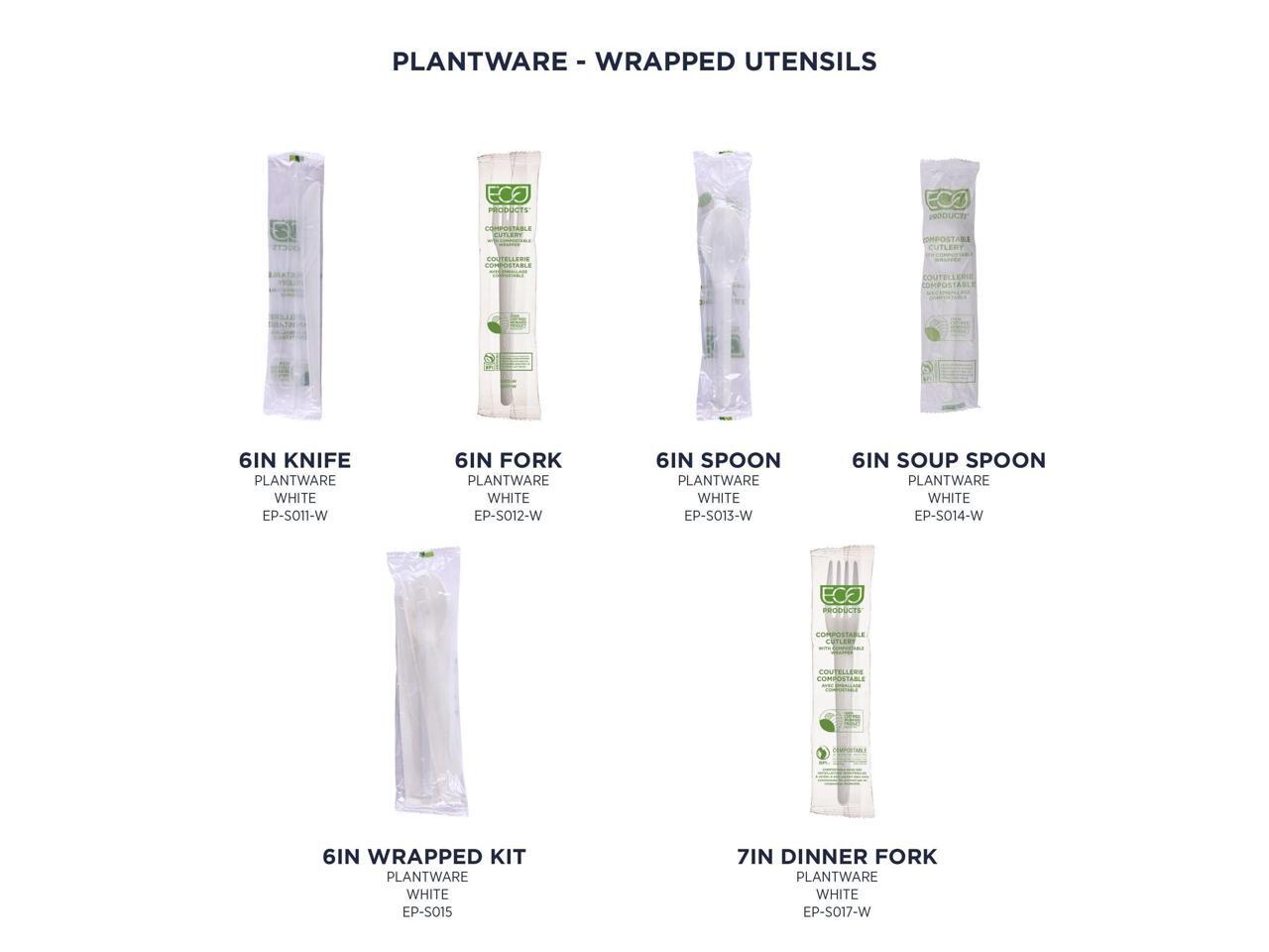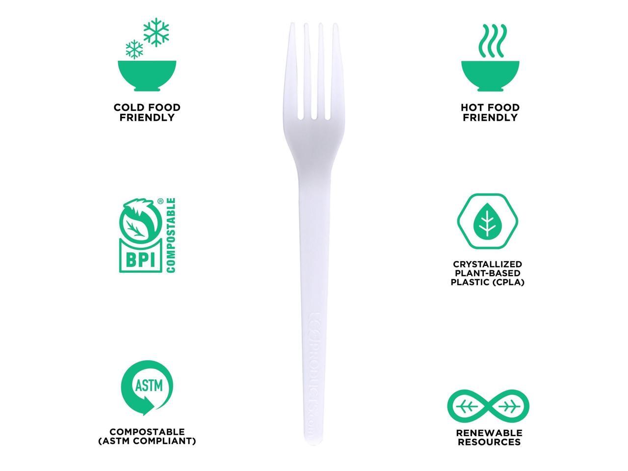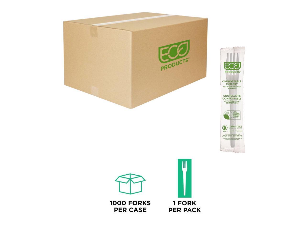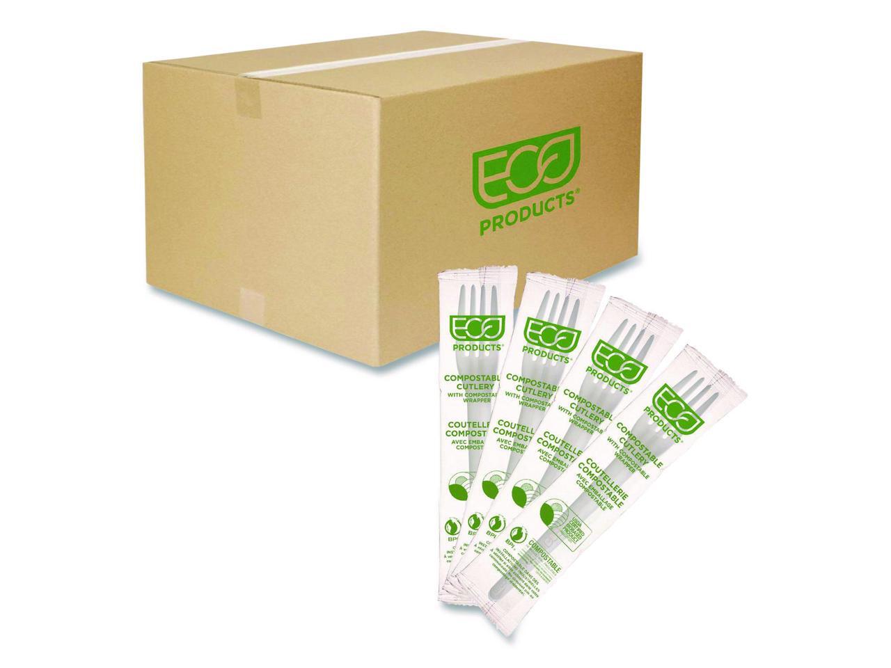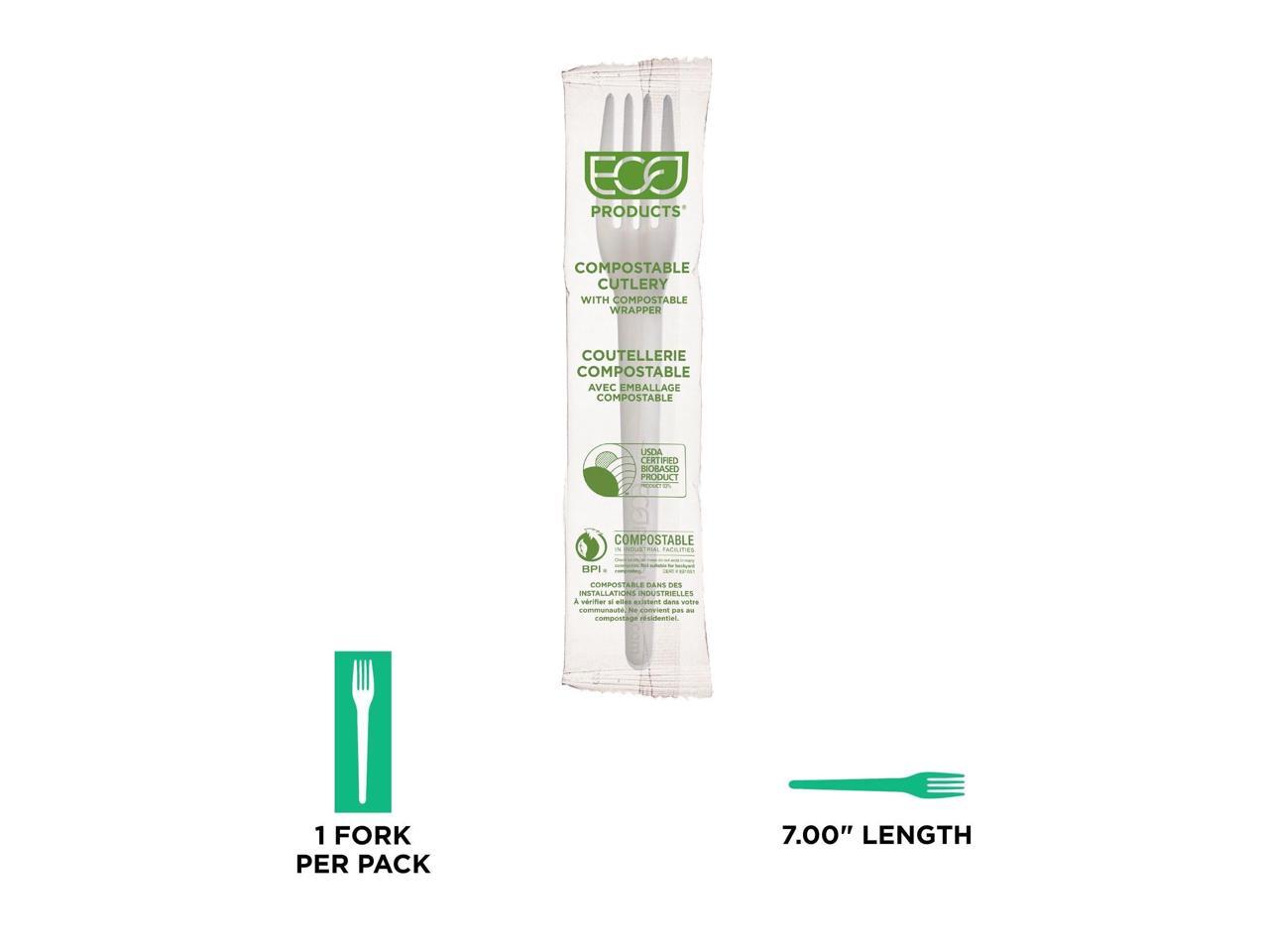 Eco-Products EP-S017-W Plantware CPLA Cutlery Individually Wrapped Plastic Fork - White - 1,000/Carton