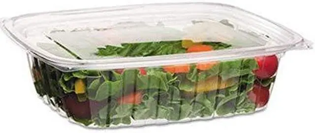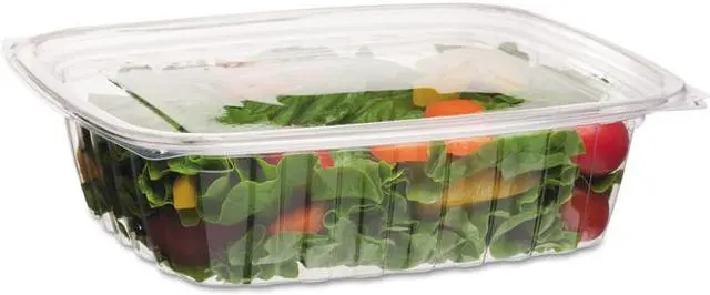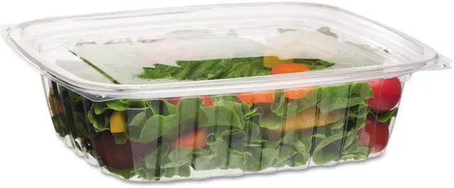 Sustainable corn-based plastic construction performs as well as petroleum-based alternatives, while utilizing rapidly renewable resources. Reinforced ribbed sides provide extra strength. Large contents-view window. Food Container Type: Base; Material(s): Corn-Based Plastic; Food Container Material Type: Plastic; Capacity (Volume): 48 oz.