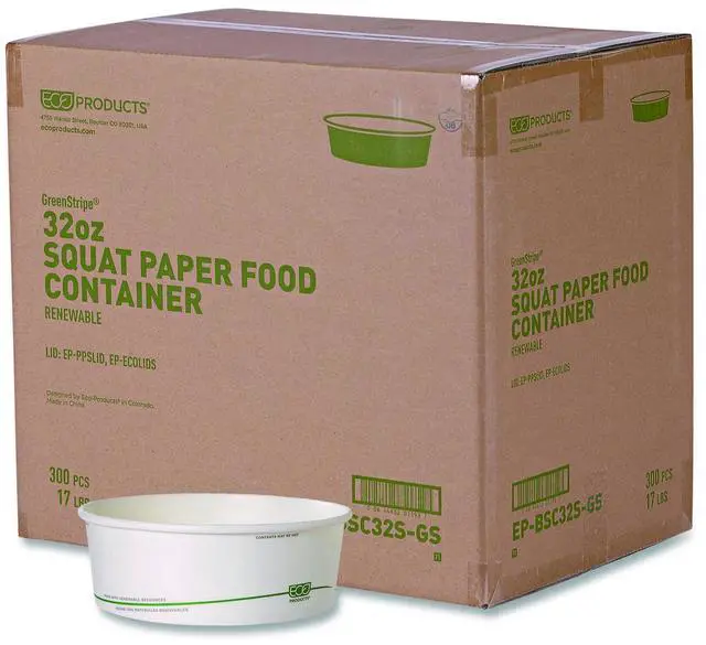 Eco EP-BSC32S-GS GreenStripe Paper Food Containers - 7.28" dia x, 2.48" - White - 300/Carton