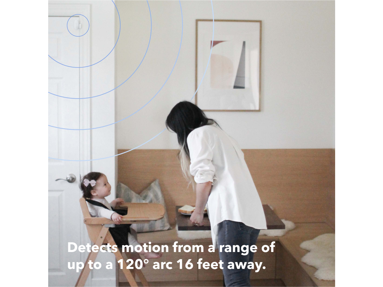 Real-time push notifications when the system is armed (ecobee Smart Security subscription required). Detects motion from a range of up to a 120°arc 16 ft away, notifying you when doors, windows are opened unexpectedly, or when unexpected motion is detected in your home.