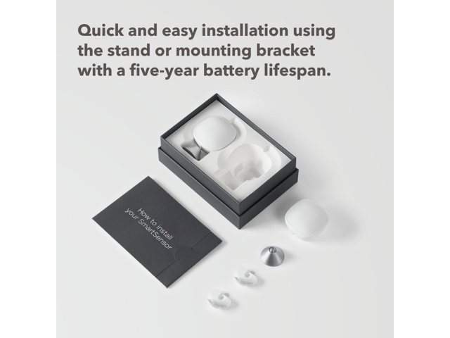 - Installation is quick and easy. Place your SmartSensor, magnetically and wirelessly, at least 5ft above the floor on its satin-steel stand or on any wall using the self-adhesive wall mounting brackets.