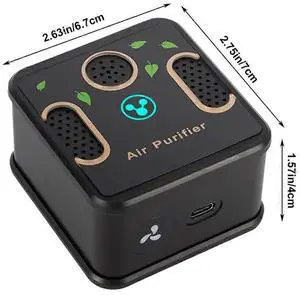 Ecocleanpath Black Mini USB Air Purifier for Car & Desk, Super Quiet with 7-Color LED Night Light
