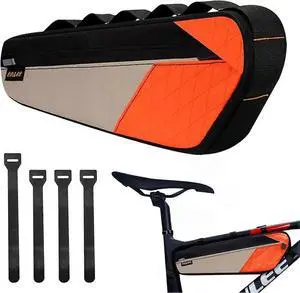 Ecocleanpath 2.5L Orange Waterproof Bike Frame Bag, Easy Velcro Install for Phone & Tools, Road/Mountain Use
