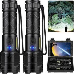 Ecocleanpath 99,000 Lumen Super Bright LED Flashlight 2-Pack, Rechargeable with USB & 7 Modes (Black)