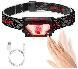 Ecocleanpath Rechargeable LED Headlamp with Motion Sensor, 1100 Lumens, Red Light & Waterproof - Black