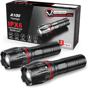 Ecocleanpath 2-Pack Tactical LED Flashlight, 2000 Lumens, Zoomable, Waterproof, 5 Modes for Emergency & Outdoor