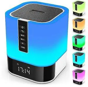 Ecocleanpath White 5-in-1 Bluetooth Night Light Speaker - Dimmable Touch Lamp, Alarm Clock, Gift