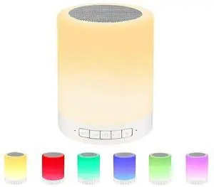 Ecocleanpath Touch Bedside Lamp with Bluetooth Speaker, 3 Dimmable Modes & 7 Colors, 1500mAh Battery, Ideal Gift (White)