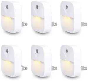 Ecocleanpath 6-Pack LED Night Light, Dusk-to-Dawn Sensor, Warm White Glare-Free for Bedroom, Bathroom, Kitchen