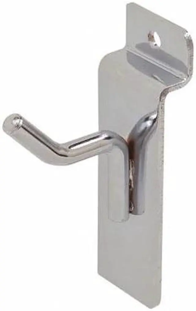 Slatwall, Hook, Overall Depth 1 In., Overall Width 1/4 In., Overall Height 1/4 In., Material Steel, Gauge 16, Finish Chrome, Color Silver, Load Capacity 25 lb., Package Quantity 96. This item has been restricted from sale in the following state(s): []