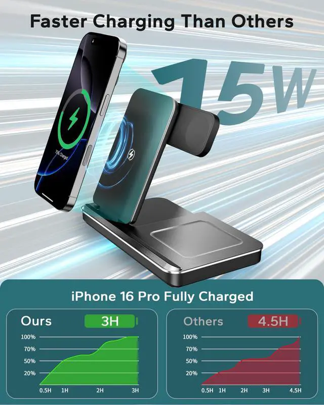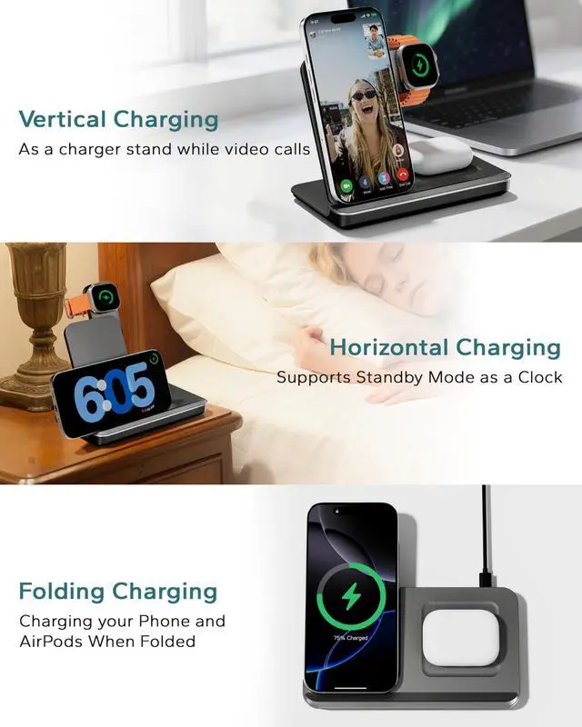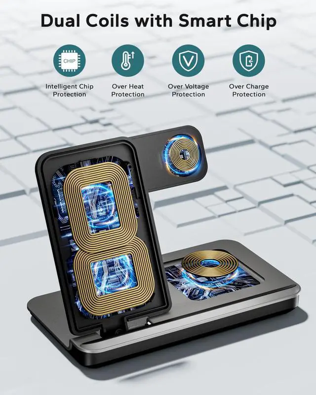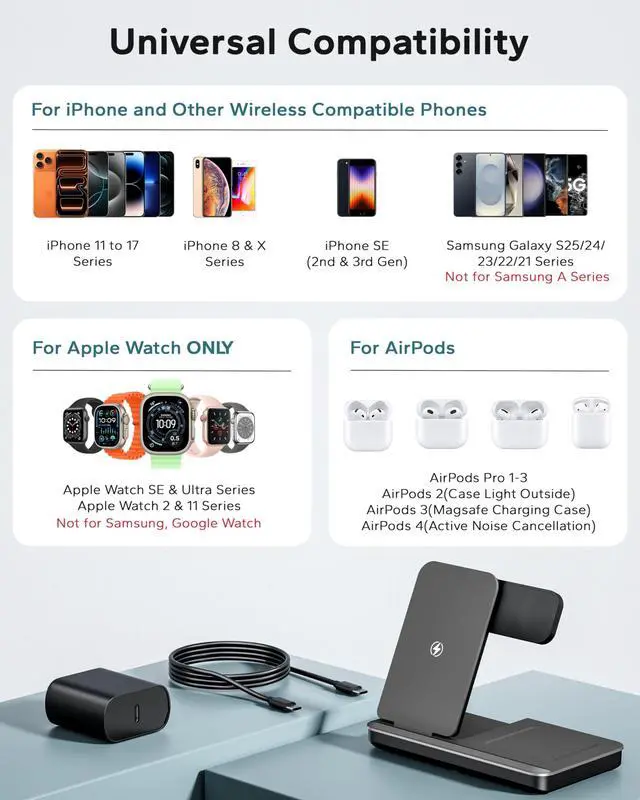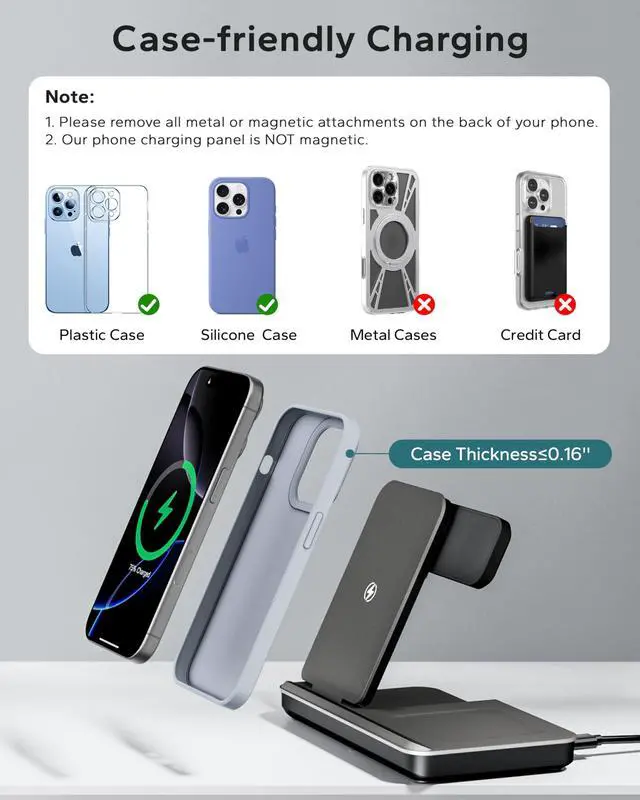 2.Keep metal accessories, credit cards or pop sockets away from the wireless charger 3 in 1.