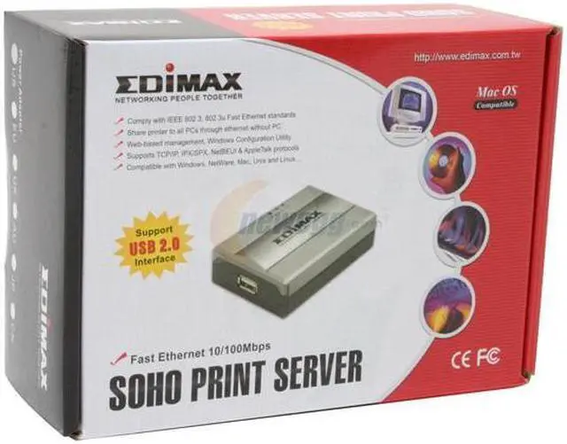 | Features | Comply with IEEE 802.3, IEEE 802.3u Wired Ethernet standards. Share printer to all PCs through Ethernet Network. Supports Peer-to-Peer Printing (TCP/IP/IPX/NetBEUI). Supports Server-based printing (Novell NetWare and Windows). Support DHCP Server and Client protocols. Provides easy-to-use installation, setup and diagnostic programs. Supports Fault-Tolerant Upgrade capability. |