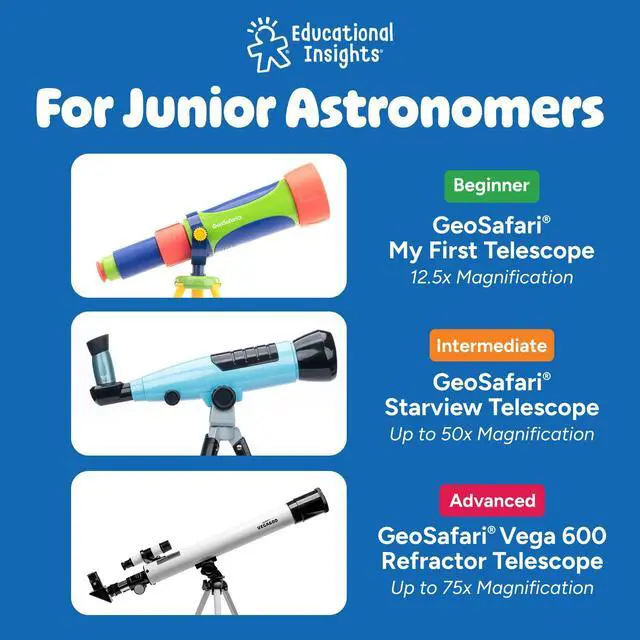 Perfect for interactive STEM activities, this telescope teaches kids important skills like observation, exploration, astronomy, scientific inquiry, early physics, and more! This is a great astronomy gift for children who love outer space, stars, planets, astronauts, and more! Combine STEM learning with hands-on fun.