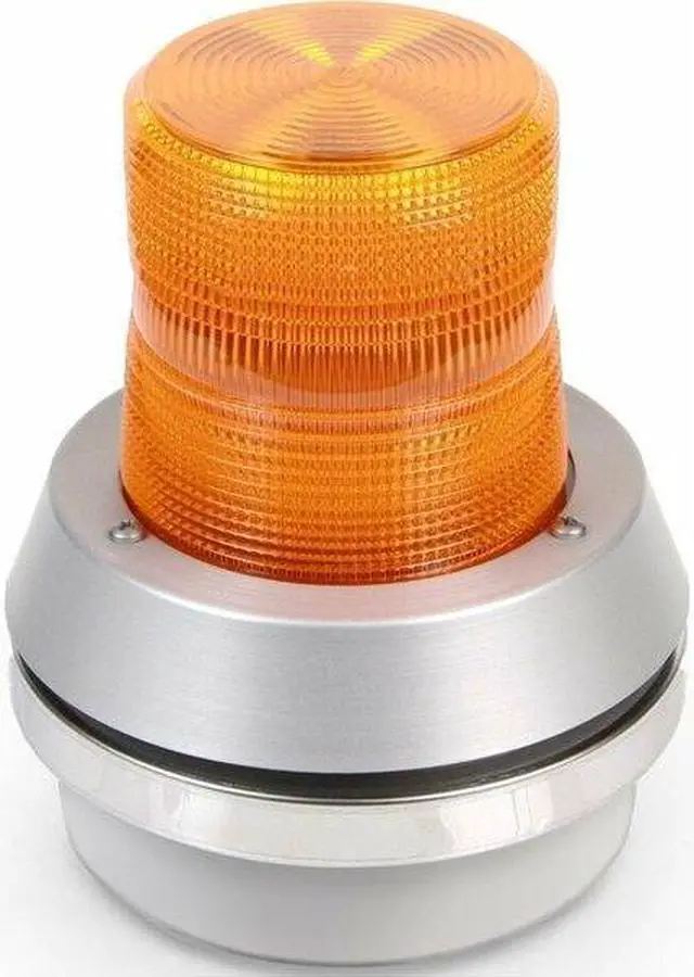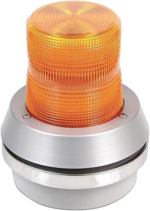 Flashing Light with Horn, Cast Aluminum Base, Polycarbonate Lens, Height 7-3/8 In., Diameter 6 In., Decibels 85dB @ 10 ft., 120VAC, 0.29A Amps, 40W Lamp Watts, Direct, 1/2 In. Conduit or Box Mounting, Cast Aluminum Housing Material, Silver Base, Amber Lens Color, UL, cUL Standards. This item has been restricted from sale in the following state (s): []