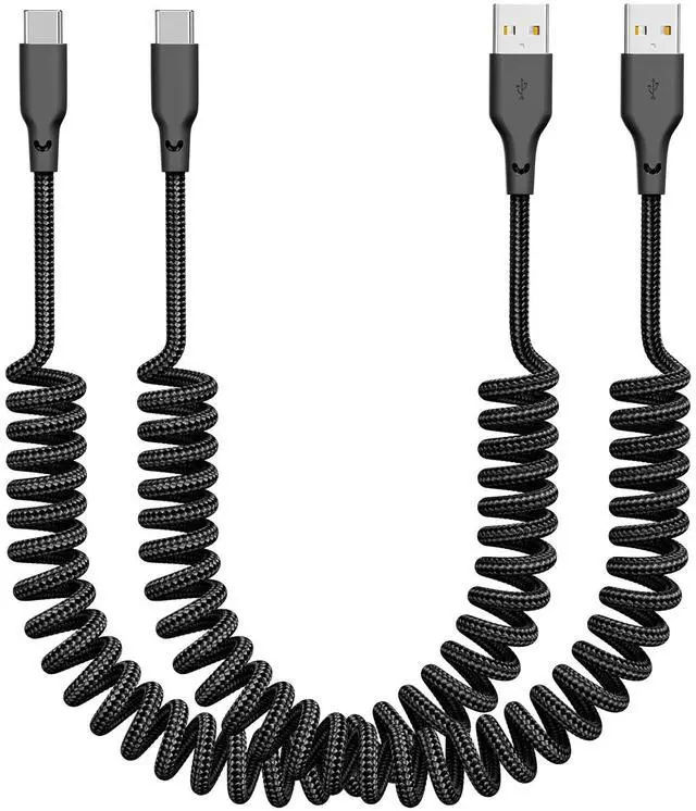 3FT Coiled USB A to USB C Charger Cord Spring-shaped retractable design keeps your car, office, or travel bag clutter-free. The cord naturally retracts to 1 ft when not in use, stretches